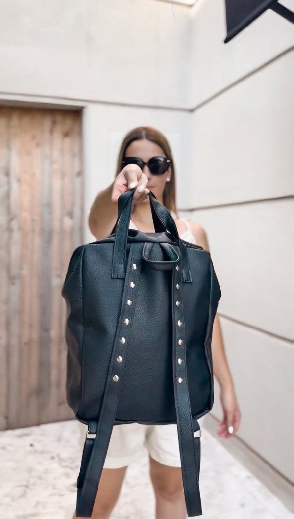 Diseño de cuero liso y texturado, con detalles de tachas.