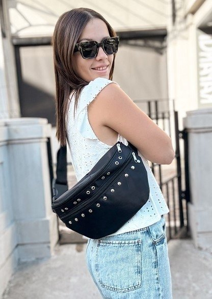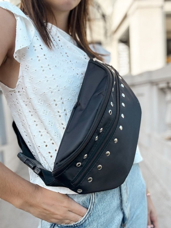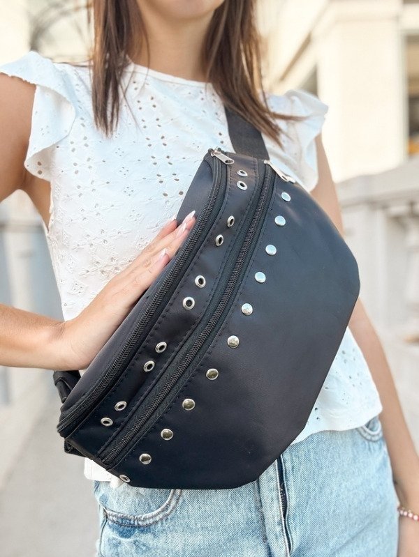 Su diseño moderno con detalles metálicos le da un toque único, mientras que el amplio compartimento con cierre te permitirá llevar tus pertenencias de manera segura y organizada. Además, su tamaño compacto la hace cómoda de llevar, ajustándose fácilmente a tu cintura o sobre el hombro.